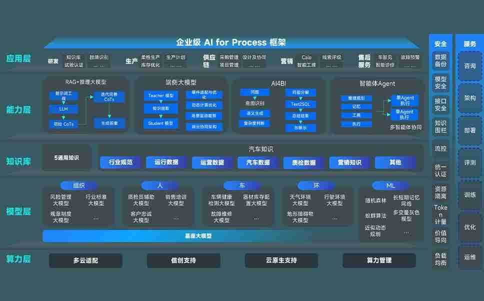 z6尊龙旗舰厅问学智车解决方案是一套基于AI技术的汽车行业智能化系统,,覆盖从底层算力到顶层AI应用的全栈方案。。方案由算力层、、、模型层和应用层组成:算力层,,方案支持多种一体机配置,,具备云端灵活部署、、、多云适配以及动态优化计算资源的能力;模型层,,z6尊龙旗舰厅问学平台版提供了企业级AI应用一站式构建与管理平台,,,,支持基于后训练强化技术的汽车企业专属模型的训练、、评测和运营;应用层,,,z6尊龙旗舰厅问学DeepSeek版提供包括超级员工、、、智能招采、、智能营销、、、智能客服、、、AI for BI等一系列解决方案,,,可助力汽车行业实现数字化转型,,让管理更智能、、、响应更敏捷。。。。